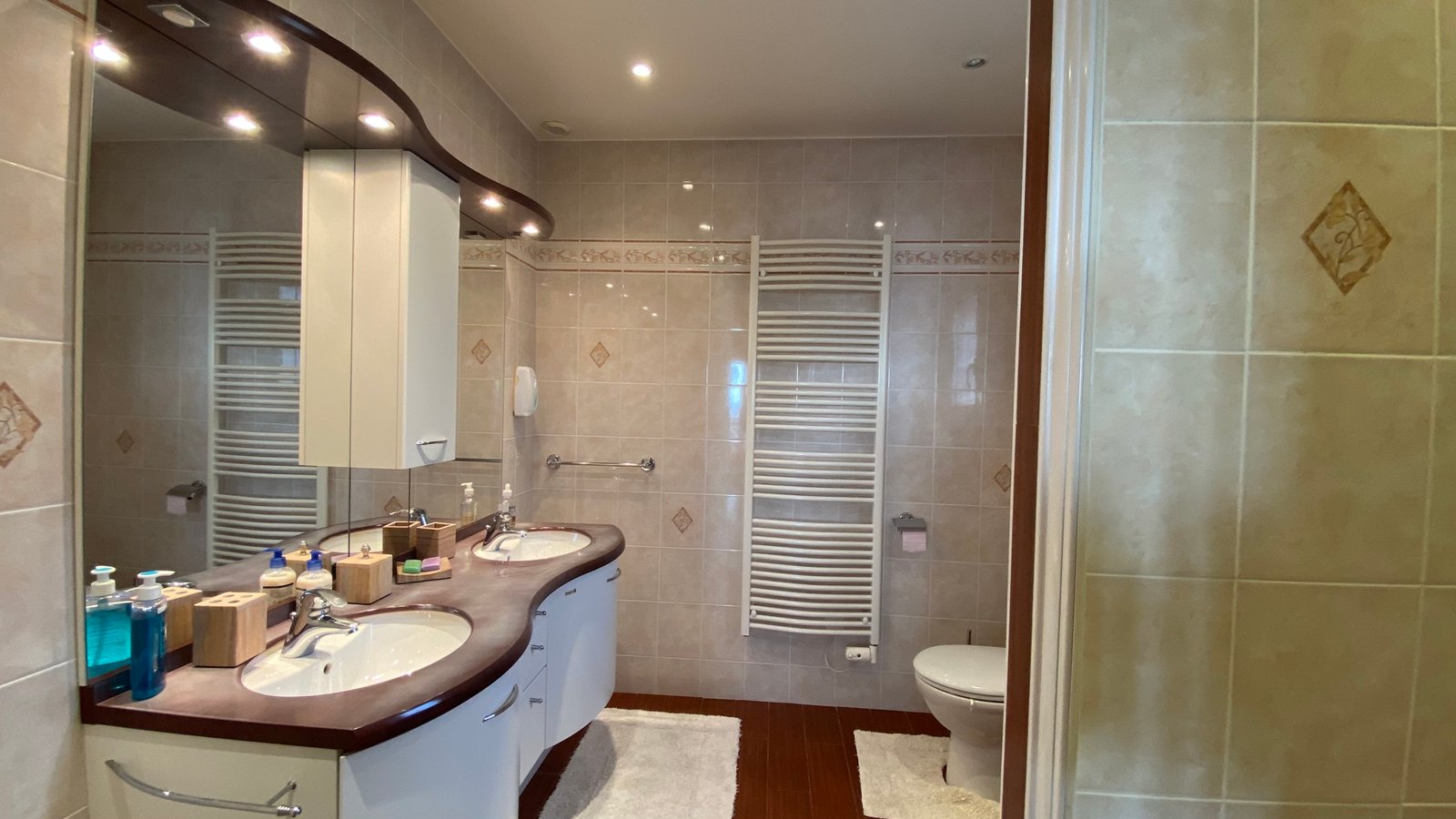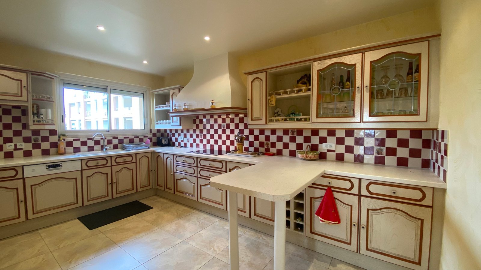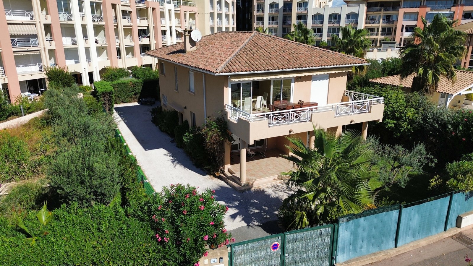 Édifiée sur un terrain privatif de près de 600 m², elle se compose de deux appartements indépendants répartis sur deux niveaux. Au rez-de-chaussée, un premier logement dispose de trois chambres, d’un salon, d’une cuisine, d’une salle de bain et d’une belle terrasse de 26 m² donnant sur le jardin. À l’étage, un vaste appartement accueille un grand salon-séjour ouvrant sur une terrasse de 26 m² avec une vue mer à couper le souffle. Trois suites avec leurs salles de bain privatives, une chambre supplémentaire, une salle de bain indépendante, une grande cuisine et des toilettes séparés complètent ce niveau.